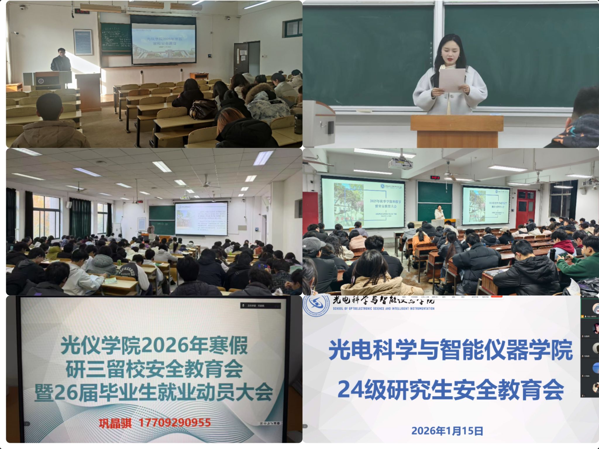 为切实筑牢假期安全防线,保障全体学生平安祥和度过寒假,按照学工部、研工部假期学生管理工作部署,光电科学与智能仪器学院通过多种方式扎实开展寒假安全主题教育活动,全方位强化学生安全防范意识,筑牢假期安全根基。