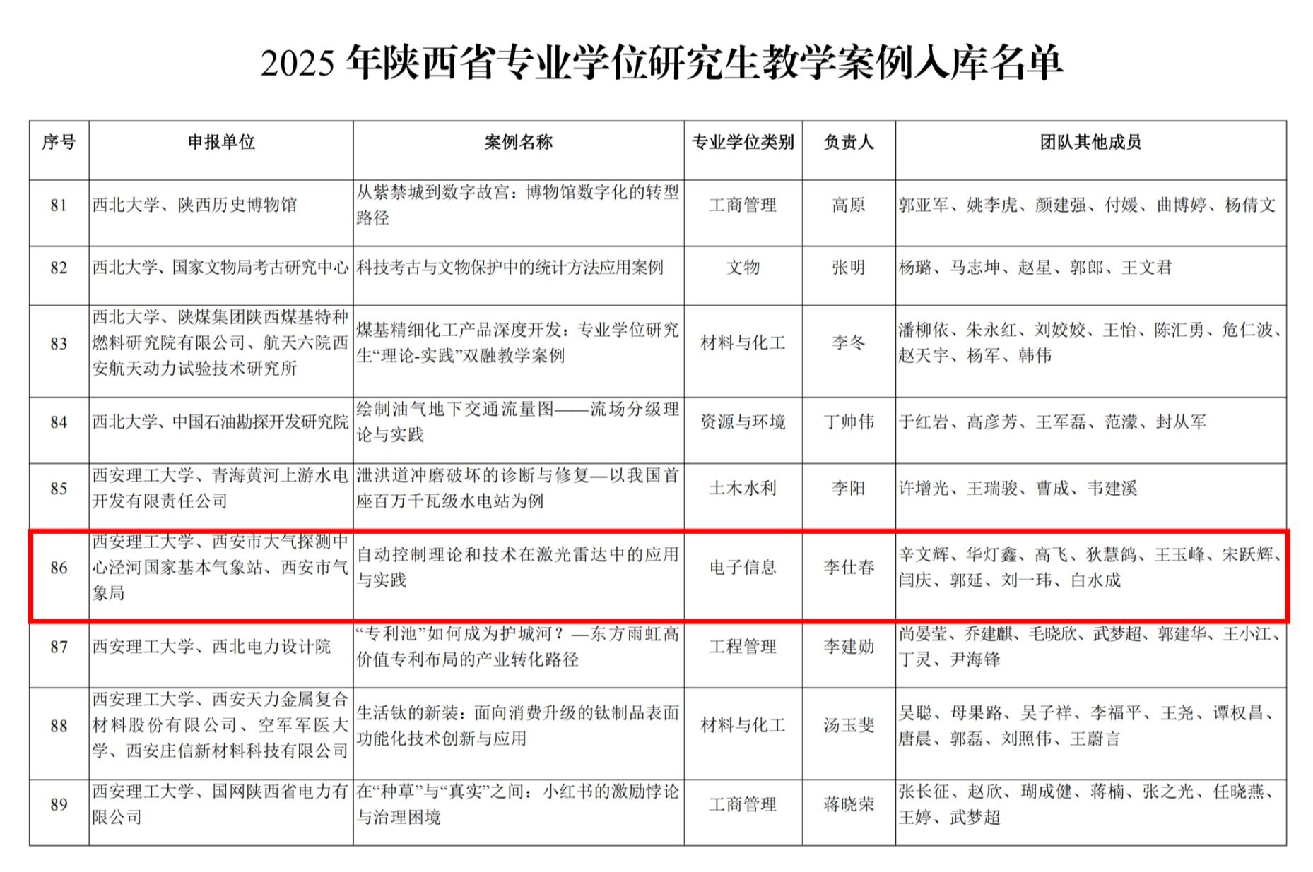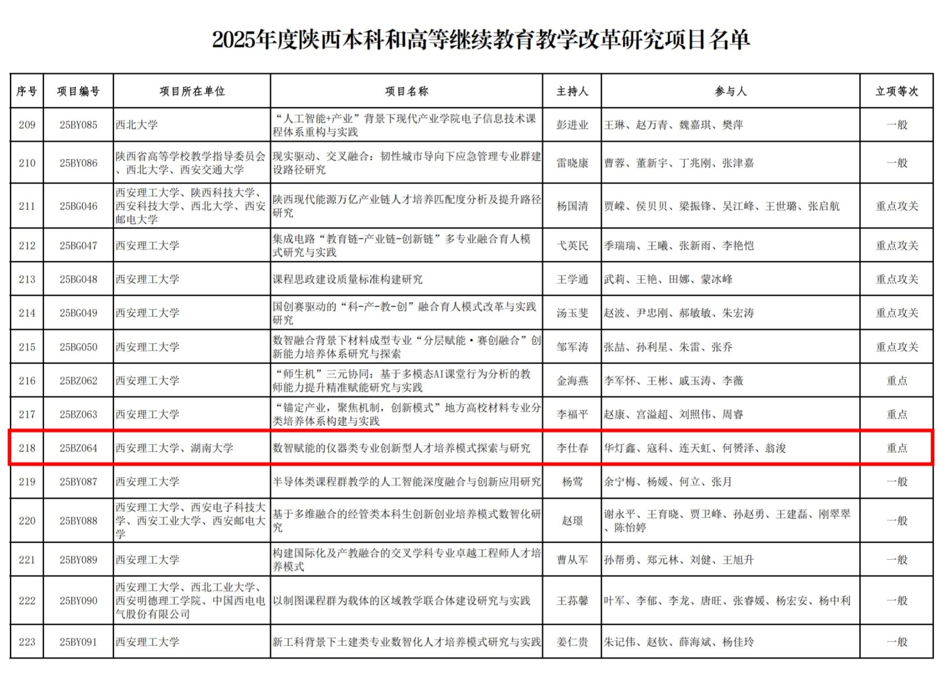 在研究生教育高质量发展和本科教学改革方面,李仕春教授主持撰写的《自动控制理论和技术在激光雷达中的应用与实践》入选2025年陕西省专业学位研究生教学案例,主持的“数智赋能的仪器类专业创新型人才培养模式探索与研究”获批2025年度陕西本科和高等继续教育教学改革研究重点项目。李仕春教授长期深耕光谱传感技术与智能检测仪器研究及相关教学工作,主持多项国家级、省级科研与教学改革课题,具备深厚的科研积淀和丰富的教学实践经验。入选的教学案例依托电子信息专业学位的“自动控制理论”课程建设与实施,主要通过实际激光雷达工程项目中的典型测控模块设计,开展以“应用背景—指标均衡—控制策略”为主线的显性课程内容教学,以及以“家国情怀—工程哲学—科学精神”为主线的隐性课程思政育人,全过程塑造研究生“精益求精”的仪器行业特质。获批的教改项目将立足学院仪器类专业教学实际,结合数智化发展趋势,围绕课程体系优化、教学方法创新、实践教学强化等核心内容开展研究与实践,进一步完善仪器类创新型人才培养模式,为行业发展输送高素质应用型仪器类人才。