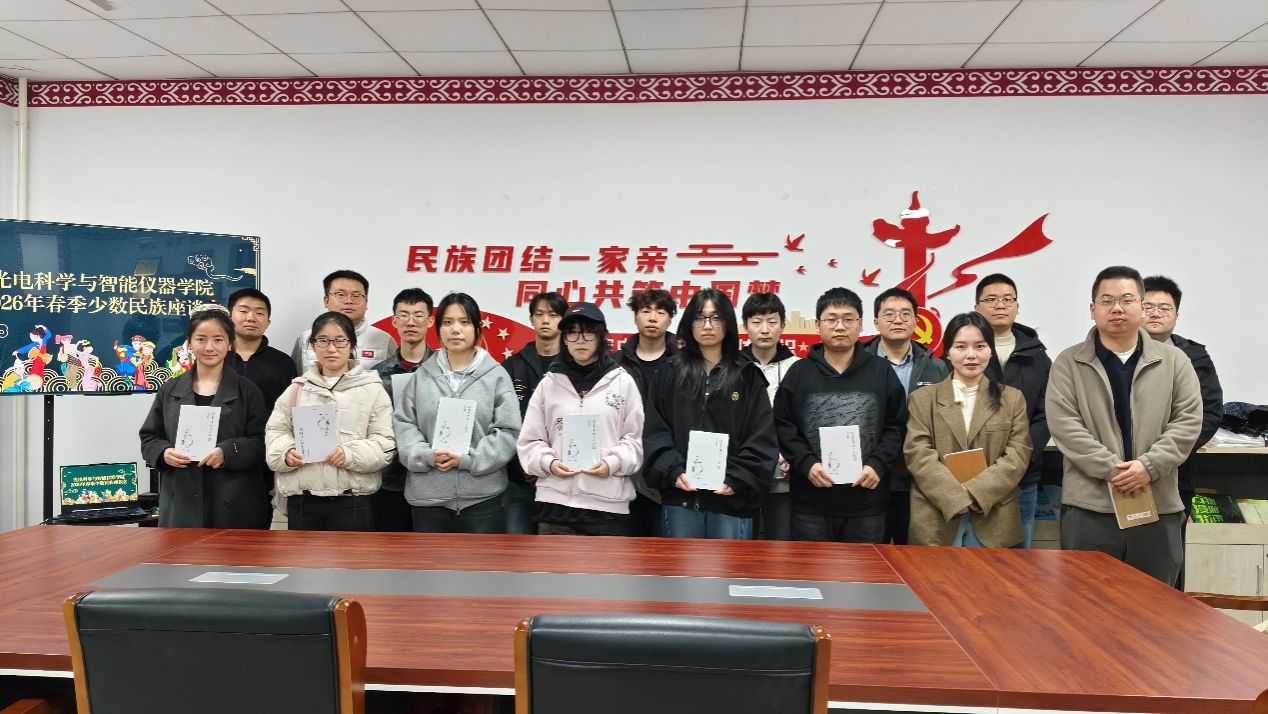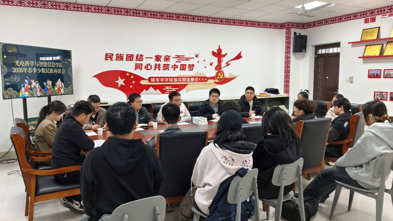 为进一步筑牢民族团结意识,3月19日,光电科学与智能仪器学院召开2026年春季学期少数民族学生座谈会。学院学工办主任巩晶骐、民族生管理中心孟庆龙、张鹏鹏、少数民族学生辅导员及各民族学生代表齐聚一堂,面对面沟通交流,共话校园生活与成长心得。