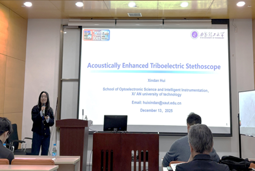 第十一届生物传感器、生物电子学、生物医学器件及生物微纳机电系统与应用国际会议(Bio4Apps2025)于2025年12月11日至12月17日在苏州与新加坡顺利举行,吸引了来自新加坡国立大学、浙江大学、东京大学、韩国延世大学、清华大学等海内外高校及科研机构的专家学者参会,围绕生物技术、生物电子及生物医学工程的最新进展展开深入交流。学院教师惠新丹受邀在“生物传感器”论坛作题为《声学增强型摩擦电听诊器用于超灵敏心音传感和疾病诊断》的学术报告。报告介绍了一种基于接触电效应与声学结构协同增强的新型心音传感技术,通过设计复合声学共振腔与高性能摩擦电传感单元,显著提升了系统对低频、微弱心音信号的检测灵敏度,并结合机器学习算法实现了对心脏疾病的智能诊断。报告内容引起了与会专家的广泛关注与积极讨论,现场交流气氛热烈。通过此次学术分享,不仅展示了学院和相关课题组的科研成果,也进一步促进了与国内外高校及产业界同行的科研合作与学术联系。